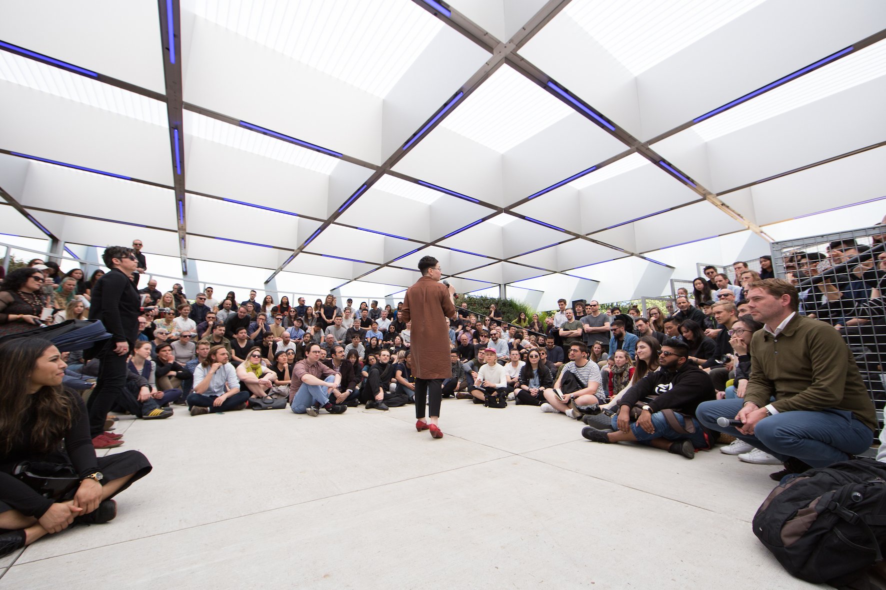 IMAGE: Esther Anatolitis presenting Grandstanding: A Reconfigurable Future at MPavilion in October 2017.